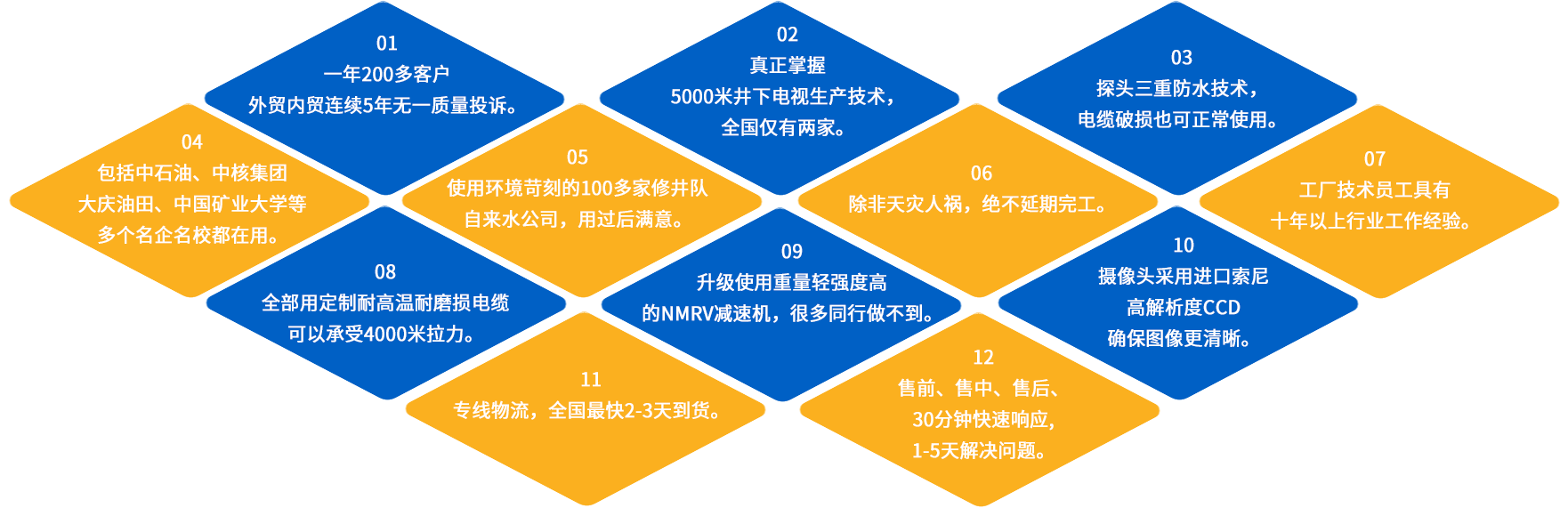 朋友本身就是行業內的,對井下電視行業亂象深惡痛絕,也知道客戶對假冒偽劣,以次充好設備的咬牙切齒,現在我們自己開公司,做事必 須對得起自己的良知,真心真意做產品。精心選材,規范工藝流程,創 新三重防 水技 術等。